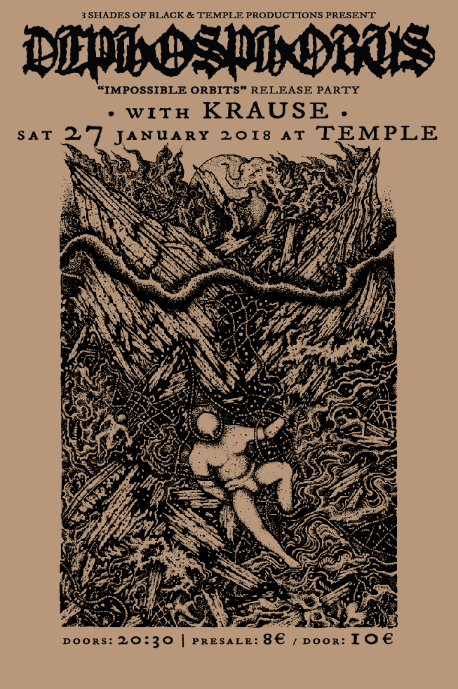 Poster by Viral Graphics for “Impossible Orbits” release gig w/ Krause @ Temple Athens 27/1/18! https://www.facebook.com/events/824278317733218/